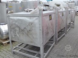 Εξοπλισμός Φρεάτιο / θόλος στον επάνω όροφο (DN 400) Εξοπλισμός Δισκοειδής βρύση Έξοδος DN80 DIN 11851 Παρατηρήσεις Σημάδια φθοράς Πλαίσιο κατασκευασμένο από V2A- δοχείο με βαθουλώματα, ιδίως στον κάτω όροφο- ράβδοι στοίβαξης μερικώς λυγισμένοι- 1 σύνδεση DN 40 στο τοίχωμα του δοχείου (βλ. φωτογραφίες) τελευταία προβλεπόμενη χρήση Βιομηχανία χυμών φρούτων